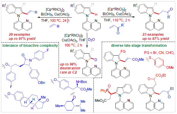 19) Access to C2 C-H olefination, alkylation and deuteration of indoles by rhodium(III) catalysis: An entry for diverse synthesis, Jiaping Wu,* Baiyang Qian, Haitao Yang, Lili Lu, Yongjia Shang,* Jitan Zhang, Org. Chem. Front. 2021, DOI: 10.1039/D1QO00133G.