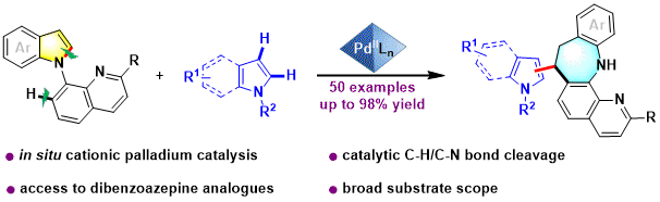 24) Catalytic Ring Expansion of Indole toward Dibenzoazepine Analogues Enabled by Cationic Palladium(II) Complexes, Jiaping Wu,* Yanfei Liu, Baiyang Qian, Haitao Yang, Lili Lu, Jitan Zhang,* Yongjia Shang*, ACS Catal. 2022, 12, 6216−6226.
