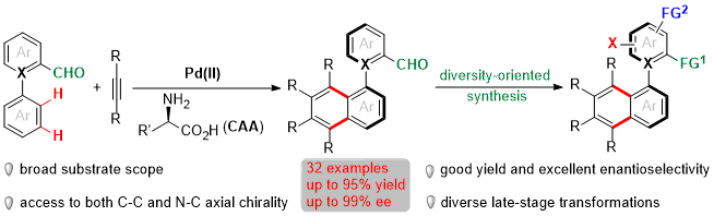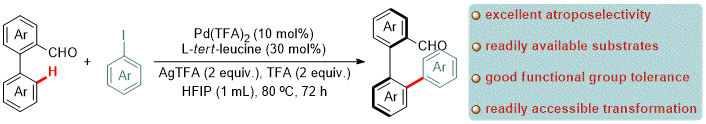 28) Palladium-catalyzed Atroposelective Interannular C-H Arylation of Biaryl Aldehydes with Aryl Iodides Enabled by a Transient Directing Group Strategy, Jitan Zhang,* Jian Fan, Ziyi Guo, Yehe Wu, Jiaping Wu,* Meihua Xie,* Adv. Synth. Catal. 2022, DOI: 10.1002/adsc.202200659.