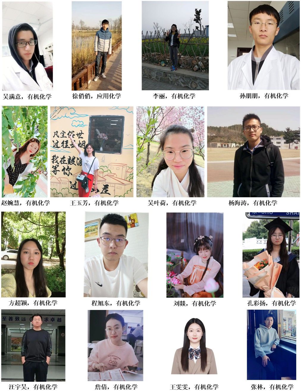 本科生: 创新团队(2016级化学)-周兰、刘楠楠、朱丽 毕业设计:周兰、朱金瑶、任豪、孙博文、张卫新、田骏鹏、周梦宇、苏方东 创新实验 居虎(2017级英才班)、丁珂(2017级英才班)、张玥(2018级英才班)、周开元(2018级英才班)、李宇航(2019级英才班)、张军(2019级英才班)、刘冉(2020级化工)、王琦(2020级英才班)、丁泽奇(2021级拔尖班)、杨正天(2021级拔尖班)