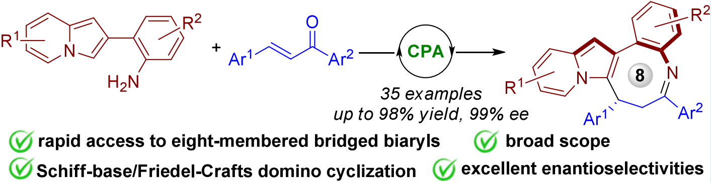 20)Xiaoxiao Song*, Yanjun Fan, Zhiming Zhu,Qijian Ni*.Chiral Phosphoric Acid Catalyzed Asymmetric Arylation of Indolizines: Atroposelective Access to Axially Chiral 3-Arylindolizines,Org.Lett.2022,24, 2315-2320.link