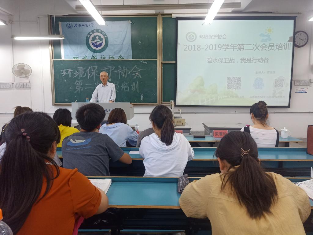 环境保护协会于行知楼2070201成功举办2018-2019年第二次会员培。出席此次活动的有环协资深顾问宫世国老师,环协指导老师荣菁秋老师,环协会长,理事长和其他协会代表。由宫老师主讲,最后由荣老师总结。