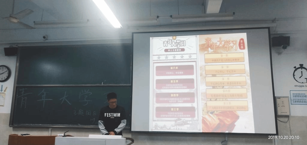 本网讯(应化二班 殷文刚)2019年10月20日晚七点半,一八级应化二班举行了“我与祖国共奋进”暨“第六季青年大学习总结”主题团日活动。本次活动主要由三个部分组成。