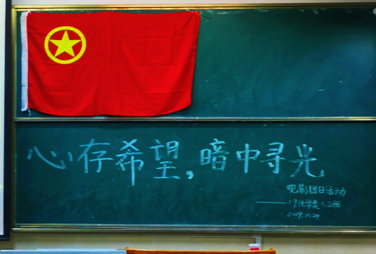 本网讯 (19级 化学类 柯锐真 方钰煊)11月24日晚,19级化学类1班和2班团支部联合开展了一次别开生面的团日活动。在团支部书记端木家瑞、罗天及其他支部委员的共同组织和精心策划下,同学们在2010502教室开展了一次以“心存希望,暗中寻光”为主题的观后感交流活动。