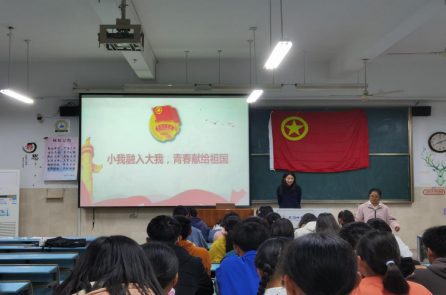 “我们是五月的花海,用青春拥抱时代...”由团小组组长巫睿教大家学唱中国共青团团歌,由胡宏伟作词,激情高昂地唱出了我们每个人对共青团的热爱,增强了团员意识和社会责任感。