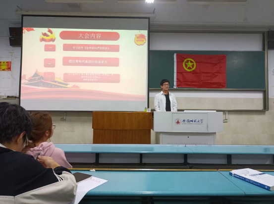 尹思燃带领同学们一起学习了习近平总书记《论中国共产党历史》,深入学习贯彻习近平新时代中国特色社会主义思想。应允义同学代表团员进行交流发言,他在演讲中回顾了中国共产党百年波澜壮阔的征程与取得的成就,号召我辈青年举起新时代的接力棒,不忘初心、牢记使命,锐意进取、埋头苦干,为祖国发展和民族复兴贡献自己的力量。尹思燃汇报了团支部开展教育评议工作情况,并通过了团支部建议评议等次。各团小组组长代表小组向大会汇报对团支部委员会工作的意见和建议,大会还对支委会开展了满意度测评。列席指导参会的学院团委委员金丽琴在总结发言中对会议取得的成果做出了肯定,同时也指出了不足,希望团支部在团支书的带领下继续努力,争创佳绩。