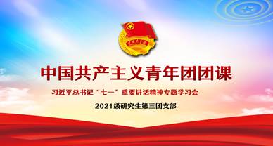 杜军)9月25日上午,化学材料与科学学院2021级研究生第三团支部组织开展习近平总书记“七一”重要讲话精神专题学习活动,交流学习习近平总书记“七一”重要讲话精神心得体会。第三团支部全体人员汇集到教室2070202进行团课学习。