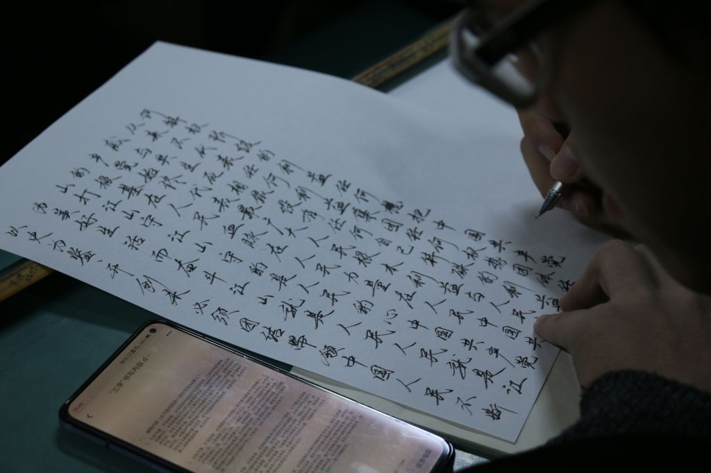 于11月19日晚在行知楼2010403教室组织开展了以“提笔感悟百年党史,挥毫赓续红色血脉”为主题的第32届“三字”书法艺术比赛。