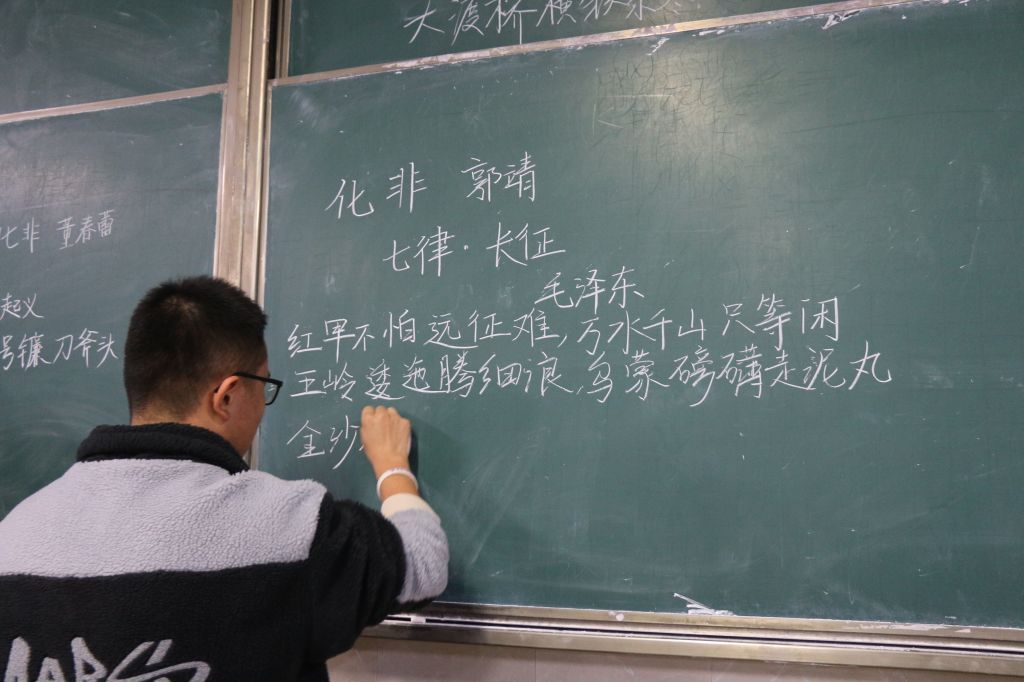 本次比赛参赛对象以一、二、三年级本科生为主,鼓励其他年级学生积极参与。比赛分为毛笔字、钢笔字、粉笔字三个部分,各项比赛在主持人的安排下有序进行。专注的神情之中,彰显参赛选手们对书法的崇尚;提笔落字之间,尽显专业素养;撇捺之间,呈现盎然的生机。钢笔字骨格清秀、章法巧妙;粉笔字铁画银钩,落笔生风;毛笔字行云流水,落笔如云烟。