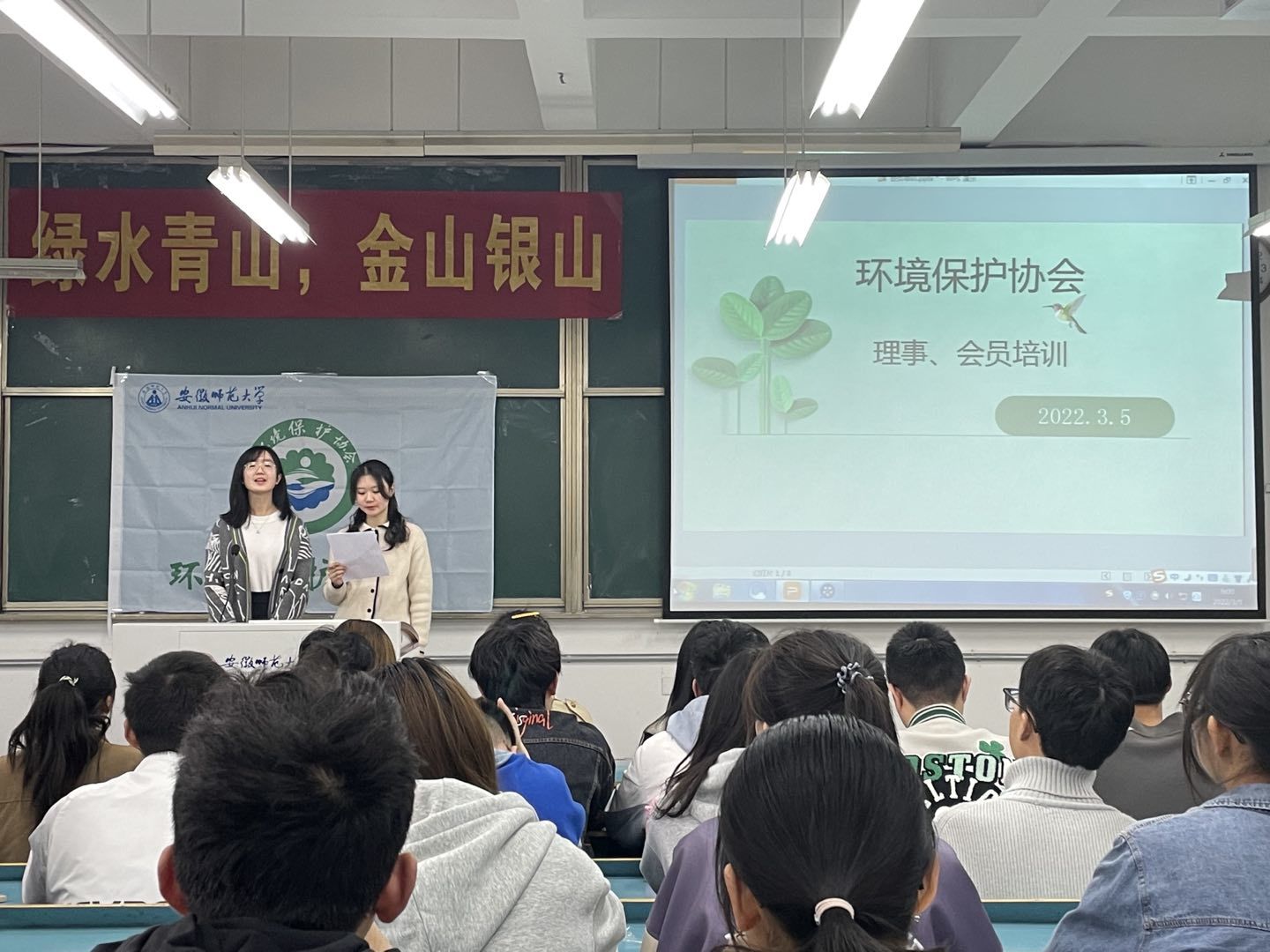 何伟康 周梦宇)为宣传创新型的环保理念,规划新学期协会工作,环境保护协会于3月5日上午召开2022年度首次会员培训活动。环境保护协会会长及各部门的部长、理事出席本次活动。本次活动由环境保护协会林昕,王辰宇同学主持。