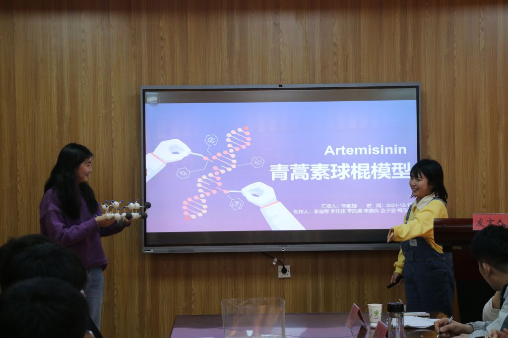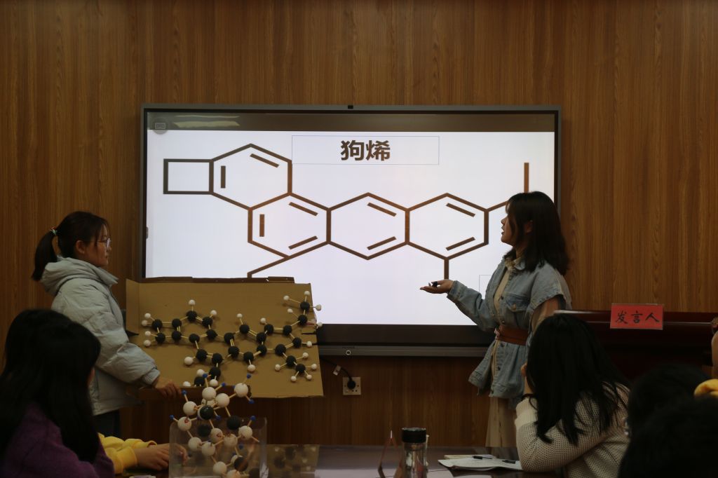 决赛中,参赛选手通过实物展示和ppt汇报相结合的形式,具体介绍他们参赛作品的分子性质、用途和特点等,同时对分子模型的结构、制作材料、制作过程、设计理念等方面进行了详细的介绍和讲解。各组参赛选手还将所设计的分子模型进行现场展示,通过分子结构、骨架等方面多维度展现了分子模型的精妙之处。