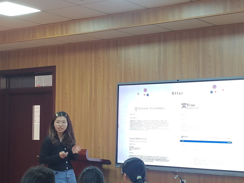 张硕)为营造良好的学习氛围,提升同学们的专业素养,激发学生参与学科竞赛的热情,充实科研经历,2022年4月27日下午14:30,院学生会生活权益部在化材楼707会议室开展以“学海竞舟,砚席同行“为主题的第十三期“Happy hour”活动,来自2018级化学师范专业的张思雨和2018级化学工程与工艺专业的顾雪薇分享她们各自的科研和竞赛经验,解答同学们的疑惑。