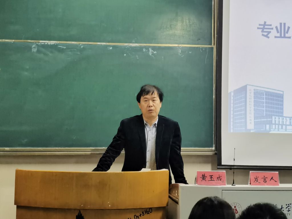 黄玉成老师进行总结发言,他强调班级需要继续加强班风建设,学风班风的建设需要从两个因素考虑,外部需要辅导员和班委发挥主要作用,学院和系部配合做好保障工作;而个人需要明确目标,有正确的学习观和分辨能力。他结合今年毕业生的实际考研与就业情况对同学们提出建议,嘱咐同学认真抉择理科和工科的研究方向,总结好成绩,积聚好力量,在求学路上取得更大进步。
