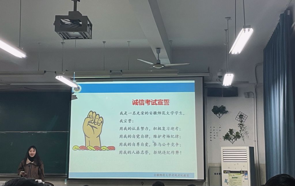 “诚信者,天下之结也。”针对即将来临的考试周,吴钰濛向同学们详细分析了考试作弊的后果与危害,并对此种行为表示坚决否定,随后带领同学们进行了诚信考试的宣誓。人无信不立,国无信不兴,崇尚诚信不仅是古训,更是当下社会良好发展的基石。我们应将诚信当作高山仰止的美德,心向往之,行践履之。内诚于心,方能外信于人,在这个信息爆炸的世界,我们更应坚守自我,坚守诚信原则,秉持持之以恒的精神,依靠矢志不渝的奋斗,向第二个百年强国目标迈进。