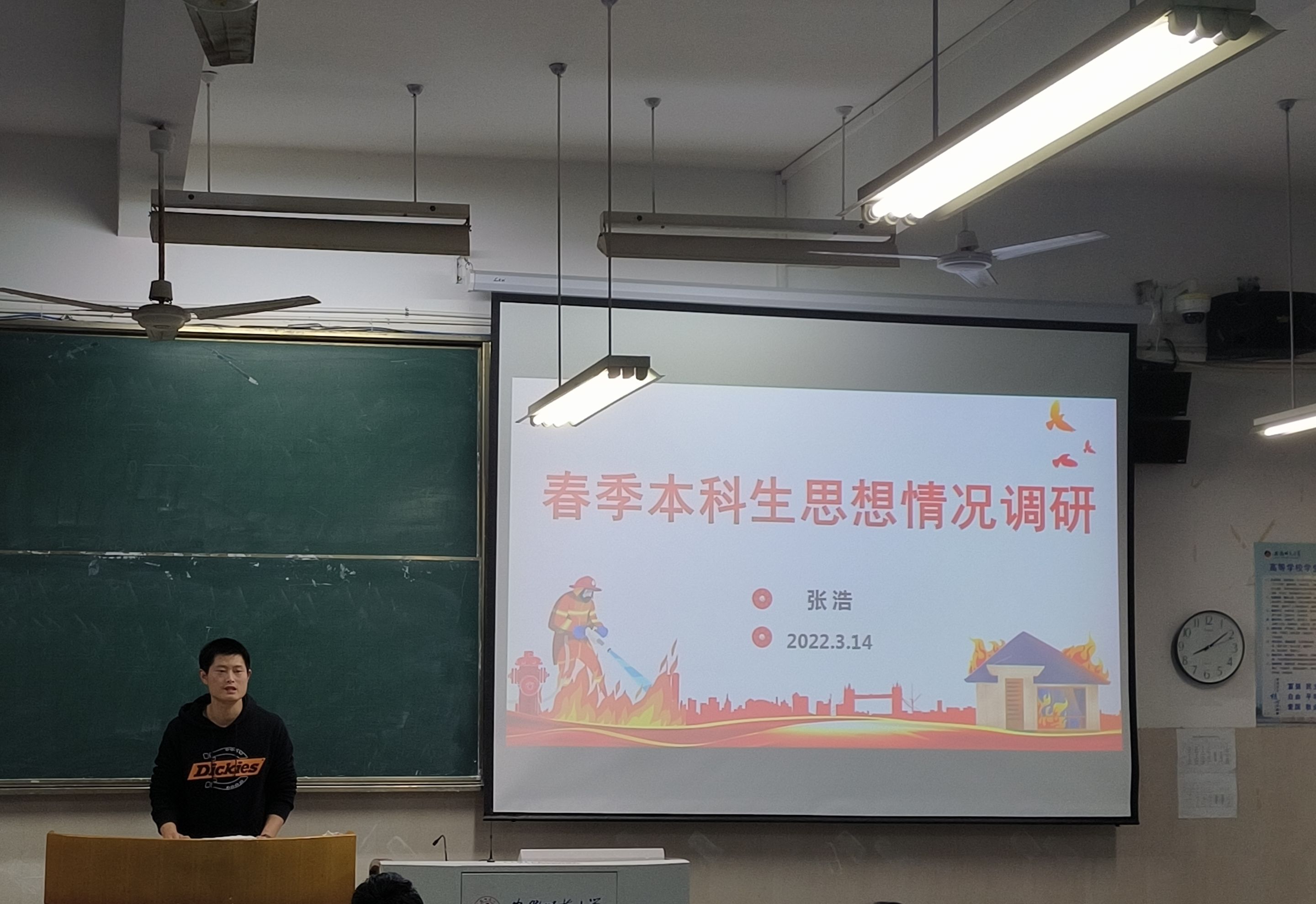 冷子辰、张浩)为响应学校号召,加强学生安全意识。3月15日,2022级应用化学、材料化学、化学工程与工艺专业召开了春季思想调研暨安全教育主题班会,会议由辅导员张浩主持。