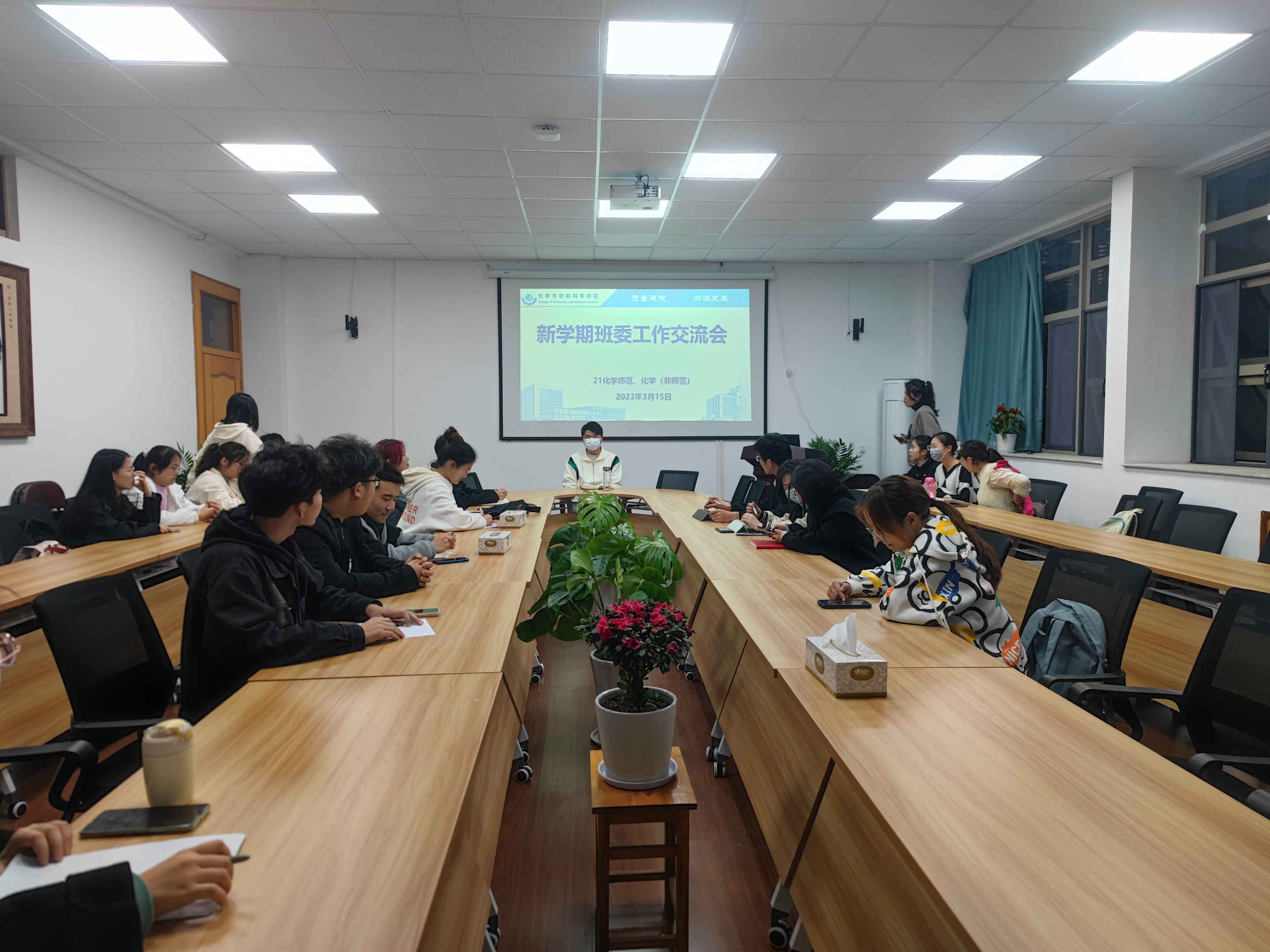 杨妍)为做好新学期班级各项工作部署安排,加强各班学生骨干队伍建设,增强学生骨干工作执行力、判断力,2023年3月15日晚,2021级化学(师范)、化学(拔尖人才班)部分班委会成员在学苑北楼9号楼205会议室参加了新学期班委工作交流会,本次会议由辅导员陶勇主持。