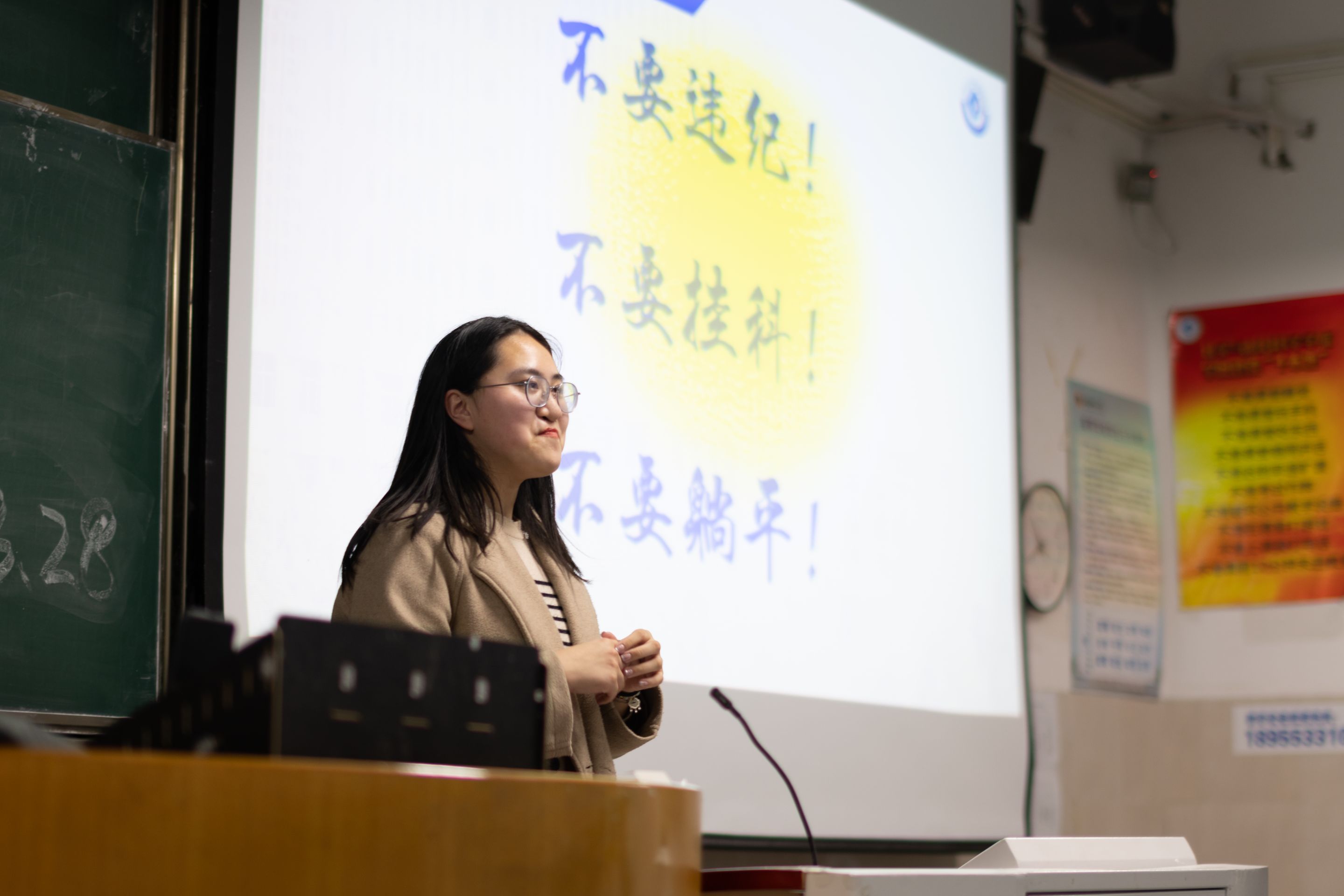 张浩首先向班级同学介绍吴泓婧本科期间取得的重要成绩。吴泓婧从学习、学生工作、志愿活动、考研保研等方面分享了自己对大学生活的感悟和认识,并通过亲身经历引导学弟学妹们做好大学生活的规划。首先是贯穿整个大学生涯的三条红线:“不能挂科,不能违纪,不能躺平”。其次要定好目标,无论做什么事都要有明确的目的,学习尤其如此,目的越明确,学习积极性就越高;目标越宏伟,为实现目标所付出的努力就越多,学习意志就越坚强。最后,吴泓婧结合自己多年在学生会工作的经验对在场的学生干部提出了几点切实有效的建议,介绍了如何更好地平衡学习和工作的关系,如何提高工作效率。