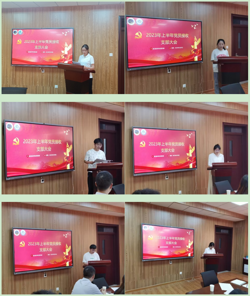 大会第一阶段,陈静蕾等6名发展对象依次向党支部宣读入党志愿书,并汇报自己的入党动机、工作学习情况、家庭和主要社会关系情况,以及需向党组织说明的问题。随后,入党介绍人王芳、梅冠东老师向大会分别介绍了对发展对象的培养考察意见,如实阐述了各自联系的发展对象情况,并对其能否入党表明意见。支部委员向大会报告发展对象的审查报告,与会党员充分讨论并发表了意见,发展对象对大家所提意见和建议表明自己的看法及今后的决心。通过讨论,大会认为静蕾等6名同志基本符合党员条件。经与会正式党员采取无记名投票表决,大会一致同意接收静蕾等6名同志成为中共预备党员,拟提交学院党委审核。