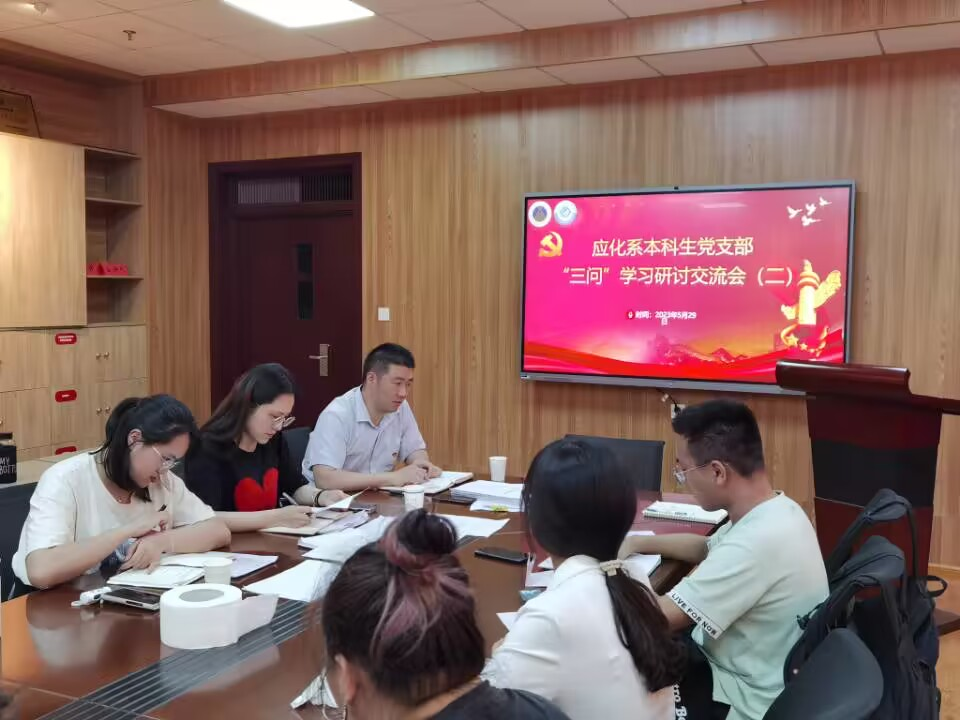 应化系本科生党支部在礼勤楼707会议室召开党支部大会,讨论接收陈静蕾等6名同志为中共预备党员和吴泓婧等5名同志转正,组织开展毕业生组织生活会党支部大会,开展第二次“三问”学习研讨交流会。会议由党支部书记王芳同志主持,学院党委副书记李古州作为普通党员列席会议。本次支部大会应到会党员22人,实到会党员20人,其中正式党员12人,因病请假2人,党员人数符合组织规定。