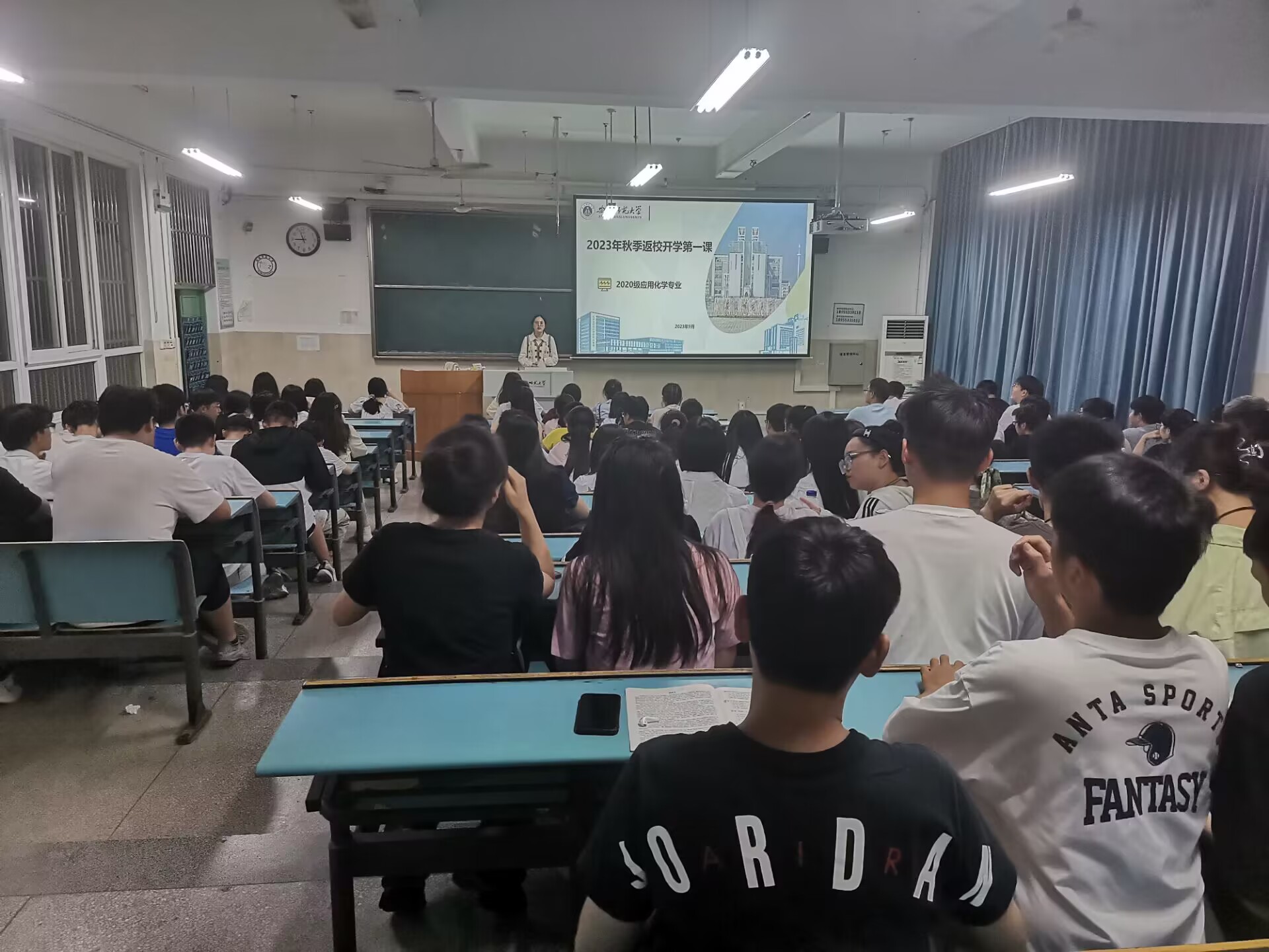 邓乐君 王芳)为做好本学期各专业同学们的学习、实习安排,确保考研、实习各项工作稳妥有序进行,9月7日晚上,20级应用化学、化学师范和化学非师范专业先后在行知楼2010301教室开展了2023年秋季返校第一课主题班会,会议由辅导员王芳老师主持。