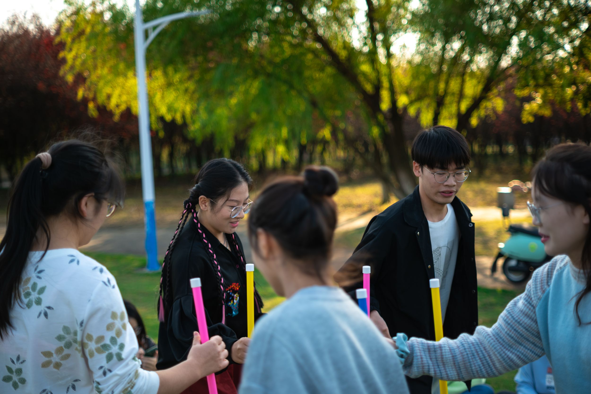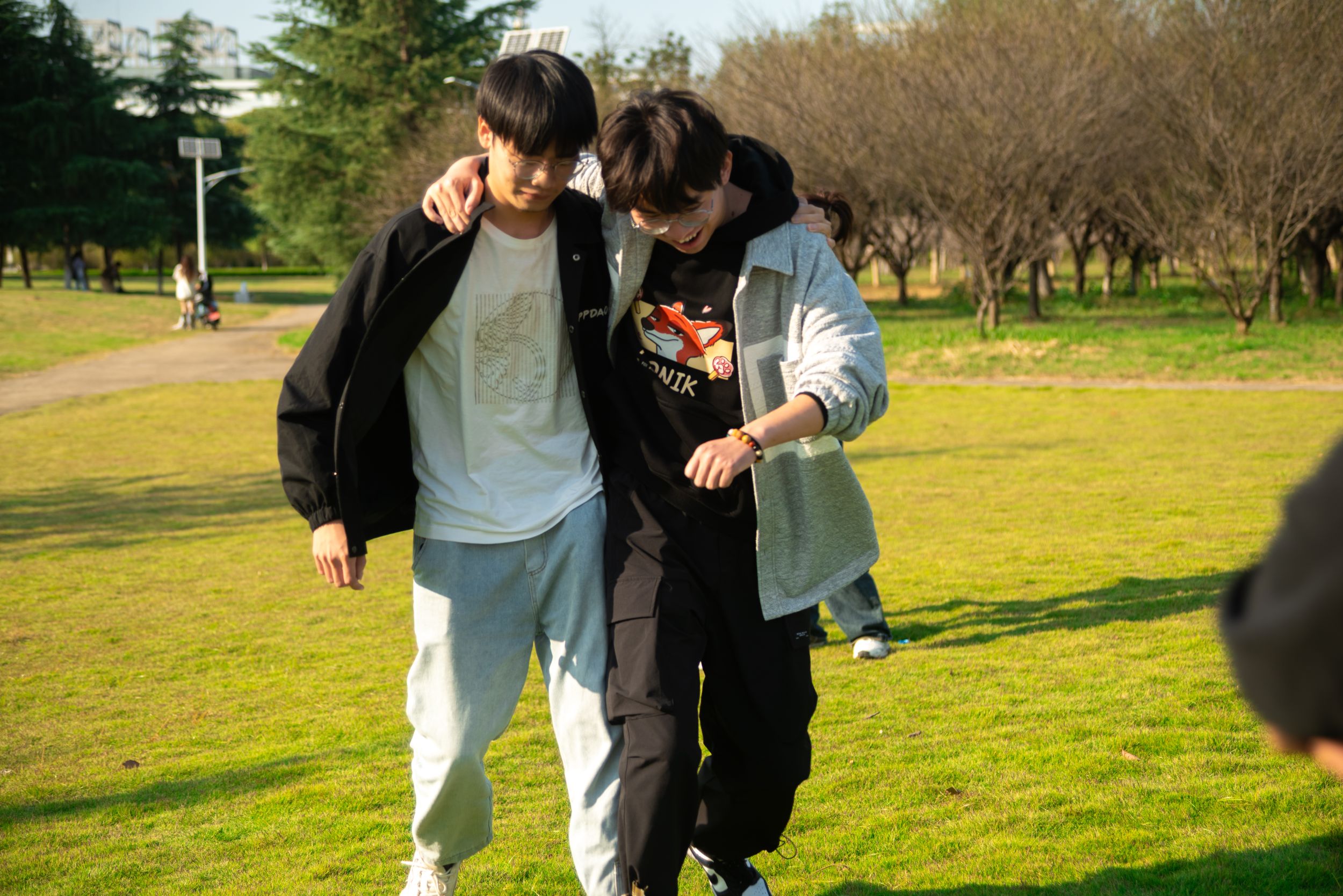深秋已至,同学们的热情却似夏日骄阳般高涨。比赛开始后,参赛选手们很快进入了状态,草坪上的同学们相互协作,气氛越来越热烈!在“两人三足”项目中,同学们肩并着肩,喊着相同的口号向着同样的目标奔去;在“蒙眼打人”项目中,每位参赛选手都使出了浑身的解数,草坪上到处都是同学们的笑声。在项目的空隙,班级同学踊跃展示自己的才艺,唱歌、跳舞、乐器、脱口秀……各种节目应有尽有。