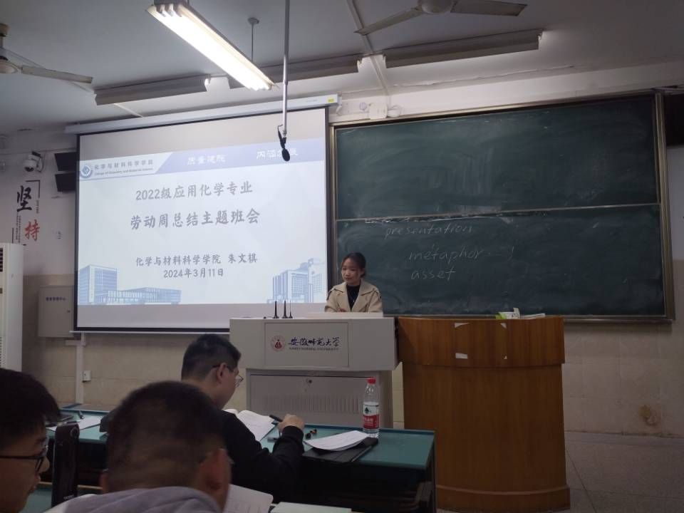 朱文棋)2024年3月11日晚上七点,2022级应用化学专业在1号楼602教室召开了劳动总结交流会,对为期一周的劳动时光做了详细的记录和回顾,会议由辅导员朱文棋老师主持。