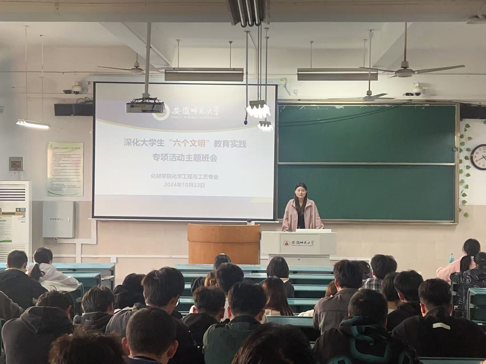 汤雷)为进一步加强大学生文明养成教育,提升大学生文明素养,2022级化学工程与工艺于10月23日在2020304召开了深化大学生“六个文明”教育实践专项活动主题班会。此次班会旨在引导同学们积极践行文明行为,共同营造和谐、文明的校园环境。