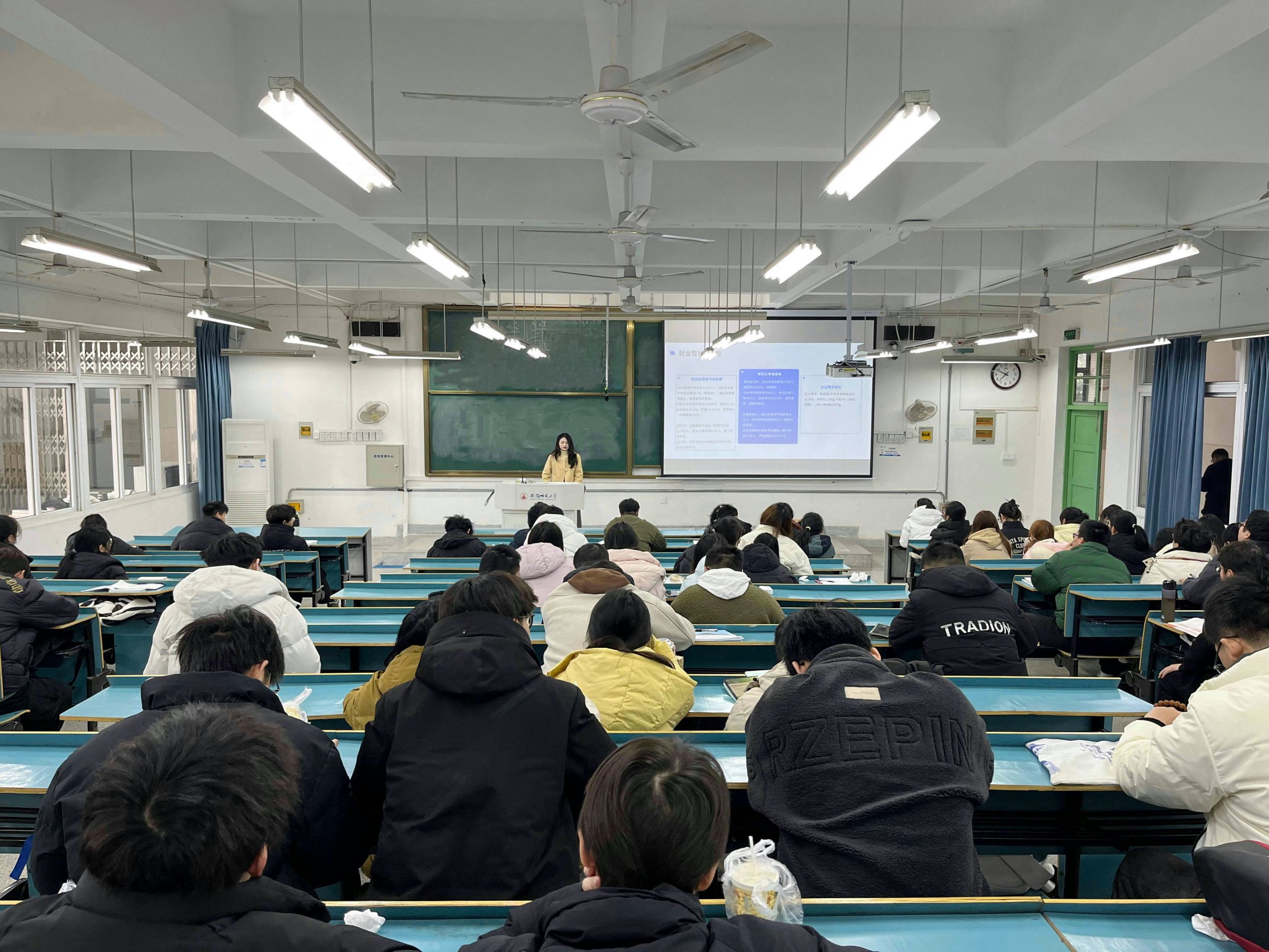 班会伊始,李老师剖析了材料化学专业的行业现状与发展趋势。从市场规模增长到国家战略需求,从技术创新突破到人才需求分析,李老师详细解读了材料化学专业在生物医用材料、高性能复合材料、新能源材料等前沿领域的广阔前景,鼓励同学们抓住机遇,勇敢投身于行业发展的浪潮之中。