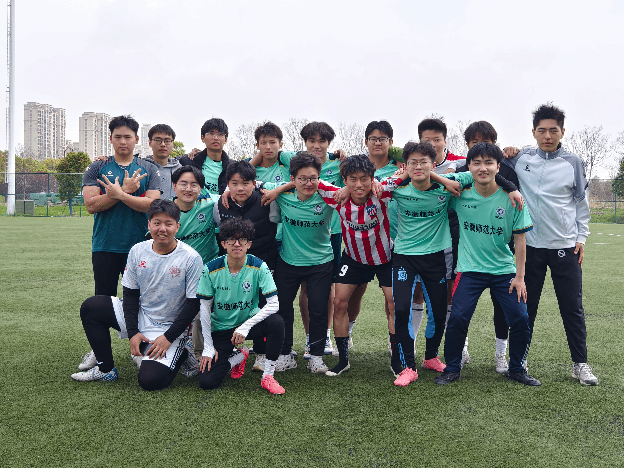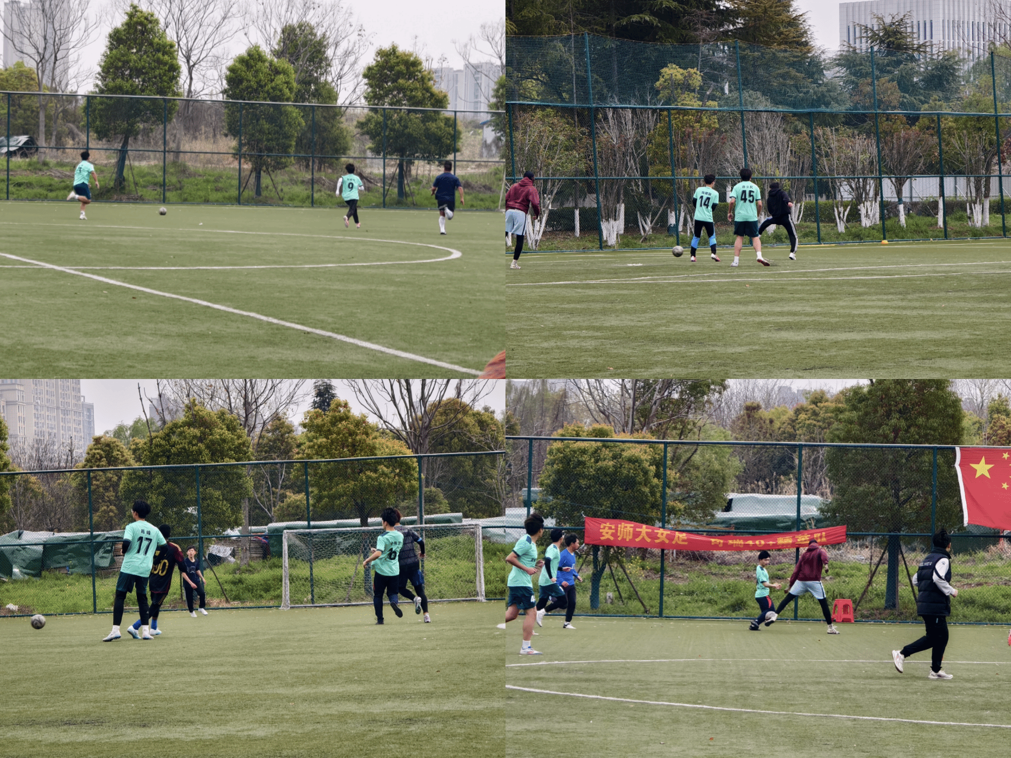 的足球队员们携手并进,个个精神抖擞,全力以赴,他们用行动展现出团结合作的重要性。在此次比赛中,化材学子展现出积极昂扬的体育精神,不畏强敌、迎难而上,坚信通过不懈的训练,能够为学院争取荣光。