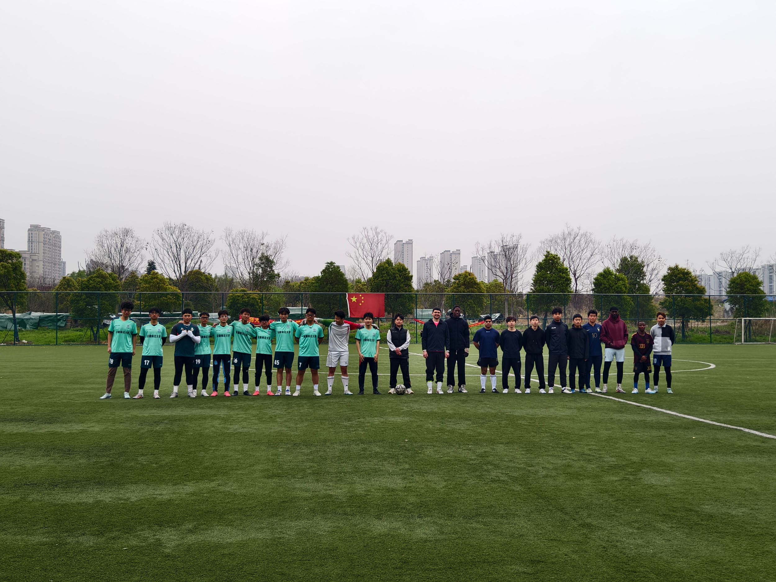 与国际教育学院在花津校区南侧体育馆足球场举办男子足球友谊赛,经历90分钟的鏖战,双方以5:4结束比赛,包子漫画