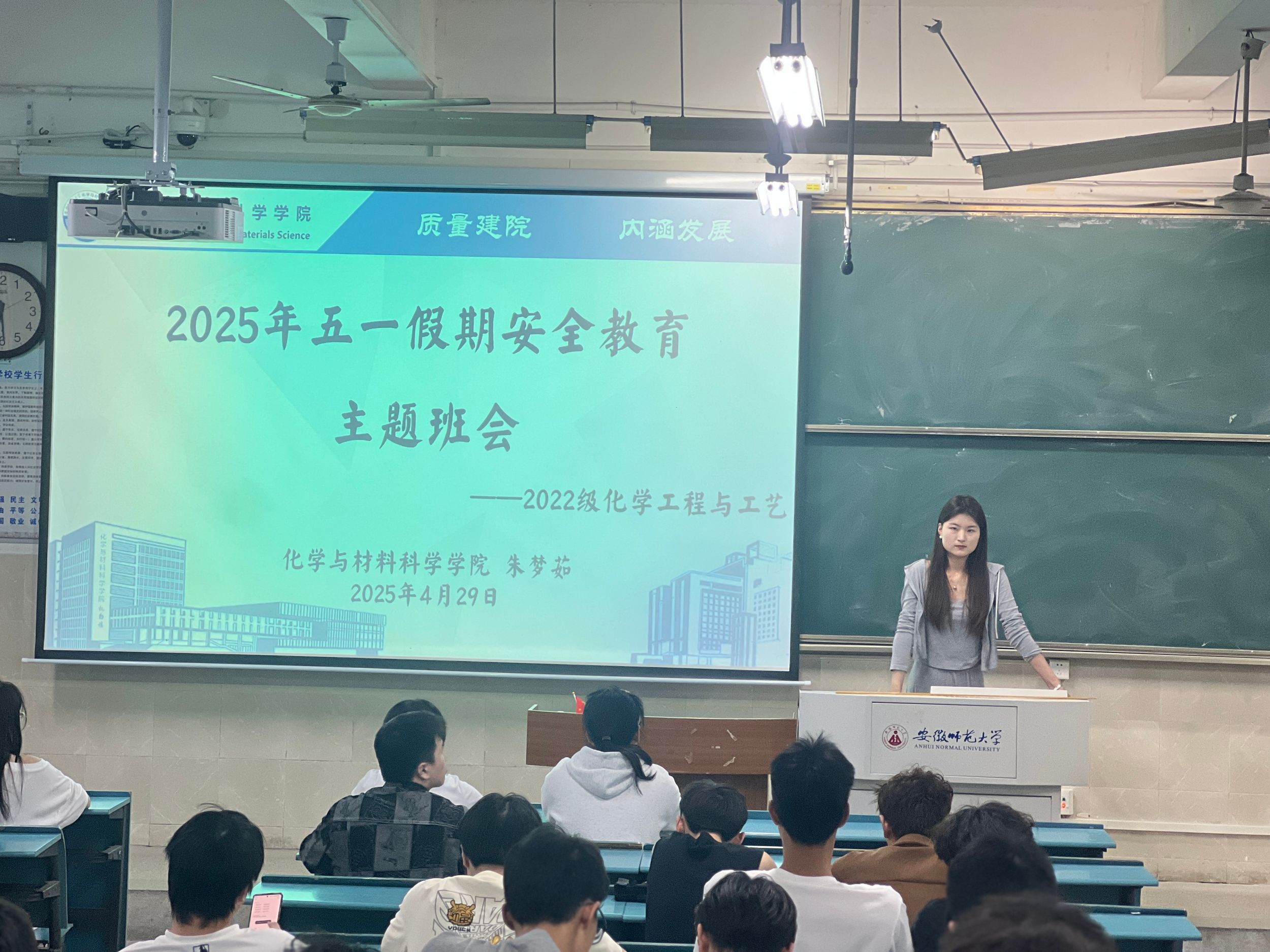 汤雷)为了帮助同学们度过一个平安、愉快的假期,筑牢安全防线。4月29日,化学工程与工艺专业辅导员朱梦茹召开专业五一假期安全教育主题班会。