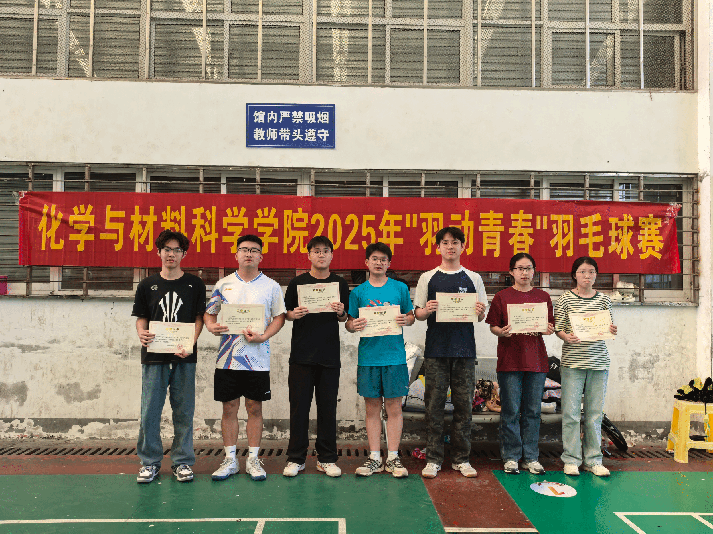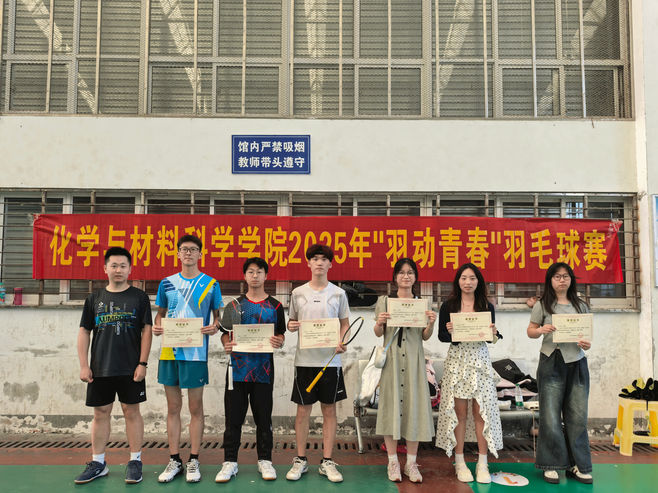 历经层层鏖战,24级新能源专业刘梓雄、24级化学师范专业陈紫忻分别夺得男子组、女子组单打冠军,24级新能源专业谭奕霖、邵伟杰,23级新能源专业王子艳、周玉蓉获男女双打冠军,24级化学师范专业盛鑫杰、刘逸轩获混双冠军。