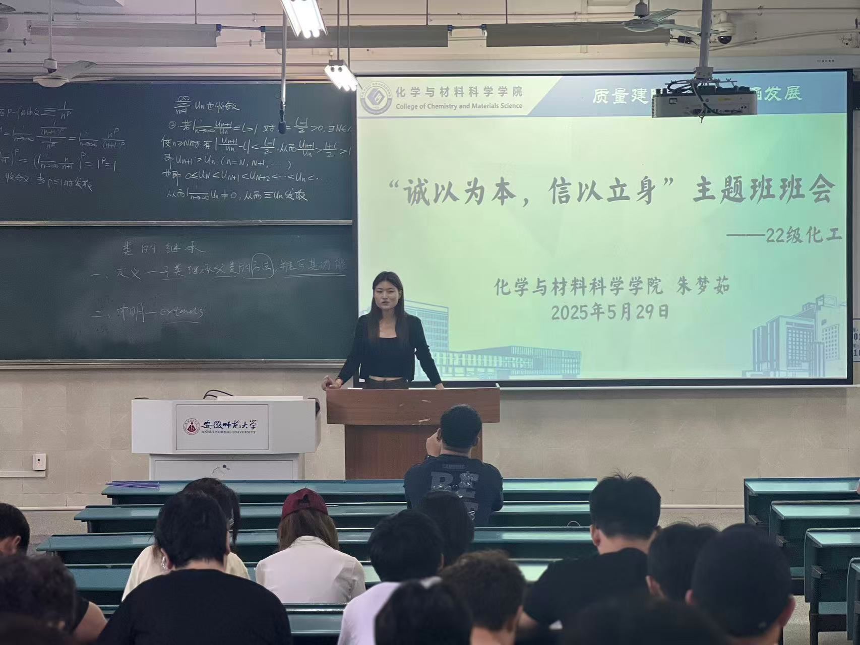 化学工程与工艺专业在2010104由辅导员朱老师开展“诚以为本,信以立身”主题班会。此次活动旨在引导即将步入大四与实习阶段的大三学生筑牢诚信根基,以真实的知识储备迎接学业检验,为未来职业发展奠定道德基石。
