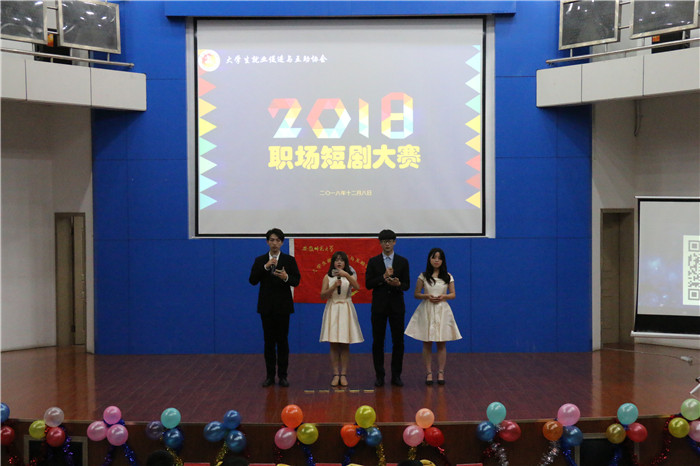 寒风萧瑟,情暖花津。为提高大学生就业创业意识,帮助大学生锻炼职场能力,由大学生就业促进与互助协会举办的职场短剧大赛于2018年12月8日晚19:30在敬文图书馆报告厅拉开帷幕。包子漫画 博士生导师孙益民老师,大学生就业促进与互助协会指导老师程紫丹老师,化学与材料科学院辅导员陈露老师,大学生就业促进与互助协会会长胡芳政及理事长程磊受邀出席观看决赛并担任评委。