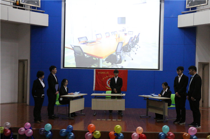 热辣绚丽的开场舞迅速吸引观众眼球,瞬间点燃了观众们的热情。主持人妙语连珠,决赛精彩纷呈,小品《职来职往》将不同个性的人面试场景演绎的栩栩如生,在面试中的成长历程也使得观众动容;短剧《保险风波》以精彩的表演向观众呈现初入职场所面临的问题;小品《如此面试》、《求真务实》成员们均默契十足,通过语言鲜明的对比性及夸张的动作,绘声绘色地展现出职场中存在的一些问题,值得当代大学生深思;中场休息中文艺部带来的歌曲《追光者》营造了温馨的氛围,以轻快的旋律将会场气氛推向了高潮。面对将要步入职场的迷茫,情景剧《刘大青和她的室友们》演绎另类模拟职场面试,也告诫大学生在学习中也要提升自身应变能力;随后,小品《投其所好》将职场的黑与白,美与丑表现的入木三分,告诫人们职场生涯中切不可“寻求捷径”,使得现场爆笑不断,捧腹不已。现场抽奖活动更是将全场气氛推向白热化。在工作人员统计评委打分后,《职来职往》、《如此面试》摘得桂冠。最后,在阵阵欢声笑语中,大家合影留念。