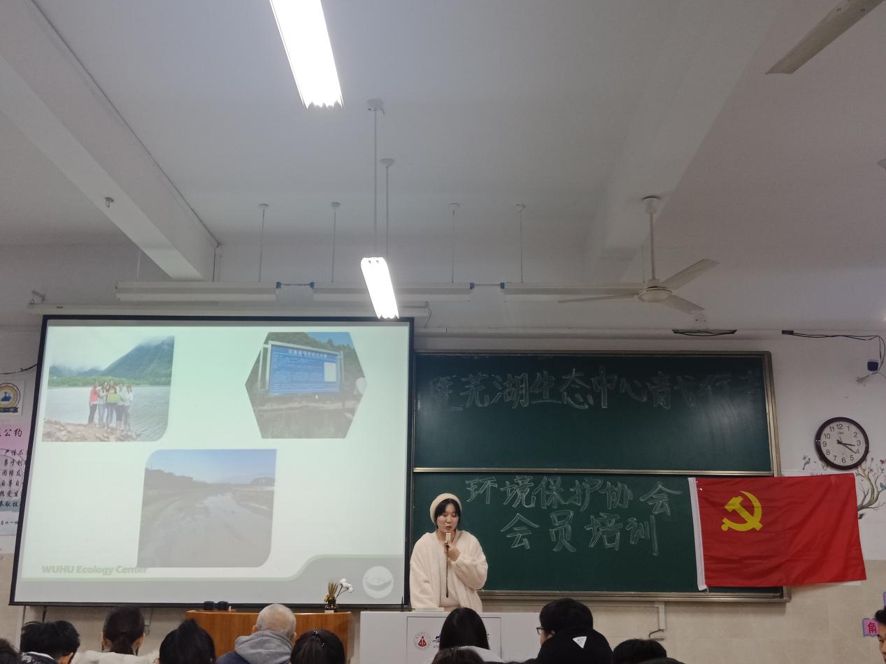 弘扬生态文明,共建绿色家园。2018年12月8日下午,由环境保护协会主办的18-19学年第一次会员培训会于花津校区行知楼2010308教室如期举行,环境保护协会指导老师宫世国教授以及来自芜湖生态中心的工作人员作为嘉宾出席本次活动,应邀前来对第21届环协骨干及会员进行讲座培训。