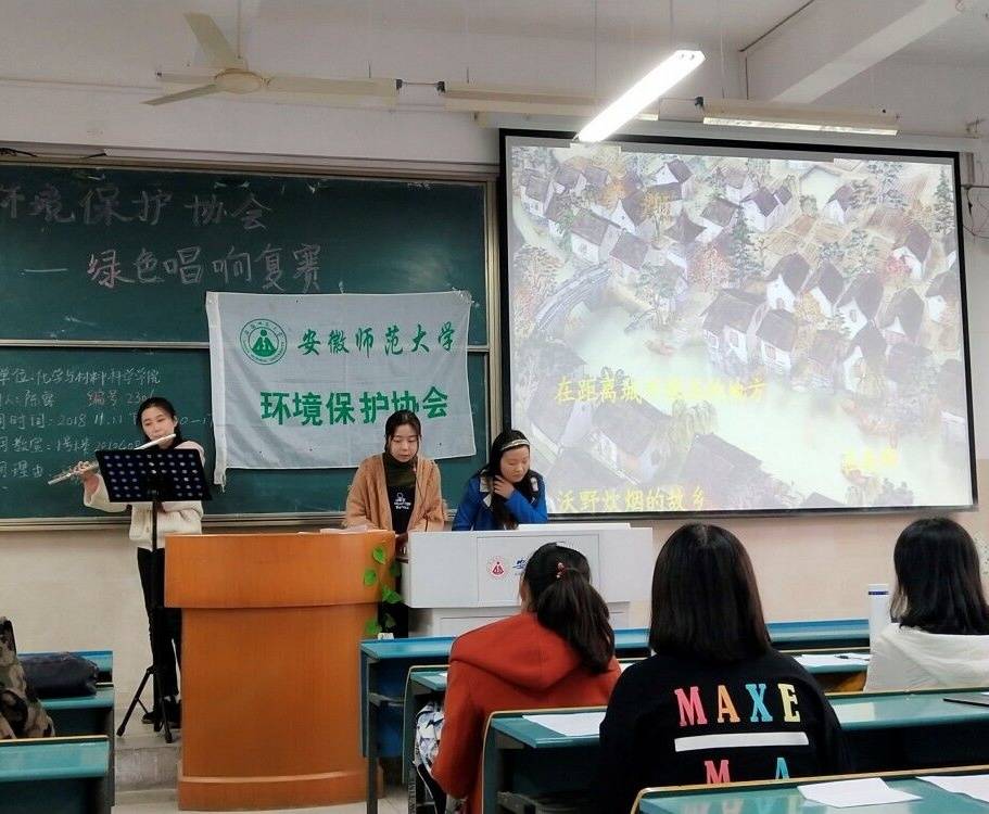 本网讯(包子漫画 环境保护协会)弘扬绿色文化,传递环保精神。11月18日下午,由环境保护协会主办的第六届绿色唱响歌曲决赛如期在花津校区理科大楼报告厅举行。协会指导老师荣菁秋、包子漫画 18级辅导员陶勇等、环境保护协会会长郭泽宇以及其他兄弟协会负责人代表应邀担任决赛评委。本次比赛分为初赛,复赛和决赛三个阶段。在每场比赛中,选手们都激情四射,用歌曲表达了他们对于环境保护的热爱。 10月30日中午,在各部门理事的积极宣传下,绿色唱响校园歌曲大赛在花津校区二食堂门前正式拉开帷幕。有很多同学积极参与这次活动,交上了自己的参赛作品并填写了信息表。每组参赛队伍都报以高昂的兴致与激情投入到比赛中,展现自己对环保独特的理解,作品内容十分丰富,涉及环保的方方面面。经过一下午的紧张初审,共有24支队伍进入复赛。 11月11日下午,复赛在2010407和2010408教室展开。比赛以淘汰赛的形式展开,各选手都用自己的歌喉唱出了精彩,唱出了环保情。比赛过程中还有许多有趣的环保小知识竞答,观众们踊跃参与竞答。在赛场上选手们激情澎湃,观众们也充满了期待,现场的气氛十分活跃,掌声也是接连不断。 经过初赛和复赛的重重选拔淘汰,最后产生8支队伍进入决赛。11月18日下午两点半,在理科大楼报告厅内,8支入选队伍随机分为两组进行比试。决赛正式开始前,我们欣赏了来自文艺部的部员带来的开场舞《怦然心动》。比赛中,各组选手用尽所能,积极展现自我,伴以悦耳的歌声,结合自己对环保的感悟体会,在给人愉悦和享受的同时,激发观众对保护环境的思考。在比赛过程中,主持人还准备了一些小节目活跃气氛,与观众进行互动,并且送上了小礼物,观众们也表达了内心对环协的祝福。统分结束后,经过评委们公正公平公开的评选后,为获奖选手颁奖。作品《从前慢》以其动人的歌喉,独特的手语舞蹈和对歌词的改编获得了评委们的青睐,夺得了桂冠。赛后,陶勇老师上台对选手们的表现进行了点评。 此次活动的主旨在于增强大家保护环境的意识,为环境保护做出一些微薄的力量。哪怕是几句简短的歌词,也能给人们心灵极大的震撼。不仅如此,参加此次比赛有数百首改编的歌曲,这些歌曲都表达了对环境的热爱,这次活动圆满成功。一日环协人,终生环保梦。环协的每一个人都秉持这种态度,为环保事业贡献出一份微薄的力量。