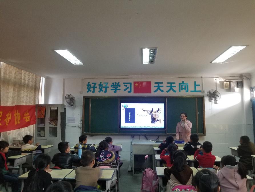 两耳不闻窗外事,一心只读圣贤书。”这是宣教成员在下午2点半进入大官山小学所看到的景象。学校虽不大,却井然有序,充满书香气息。随后,宣教成员在学校老师的带领下,到达三(2)班教室进行授课。面对孩子们天真稚嫩的笑脸与求知向上的眼神,宣教成员们用爱心与耐心营造了一个活泼欢快的课堂气氛,让孩子们更好地学习保护动物的知识。