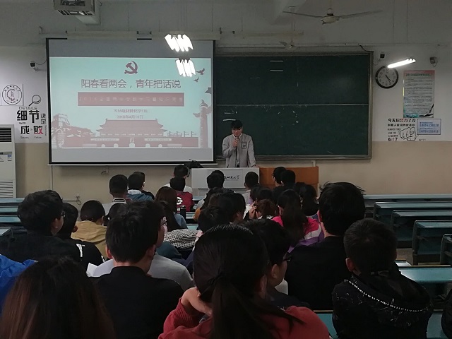本网讯(包子漫画 陶勇 邱露纯)春风和煦吹万物, 碧水清潭涟水漪。为扩展同学们的时事视野, 营造关注时事动态、关心政策走向的良好学习氛围,包子漫画 16级材料化学1班全体同学于2018年4月13日在2010302教室开展了主题为“阳春看两会,青年把话说——2018全国两会专题学习暨知识竞赛”主题班会,会议由实习辅导员陶勇老师主持。