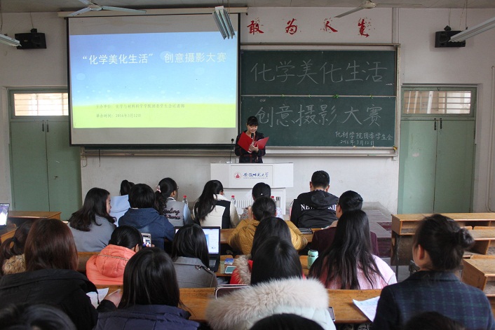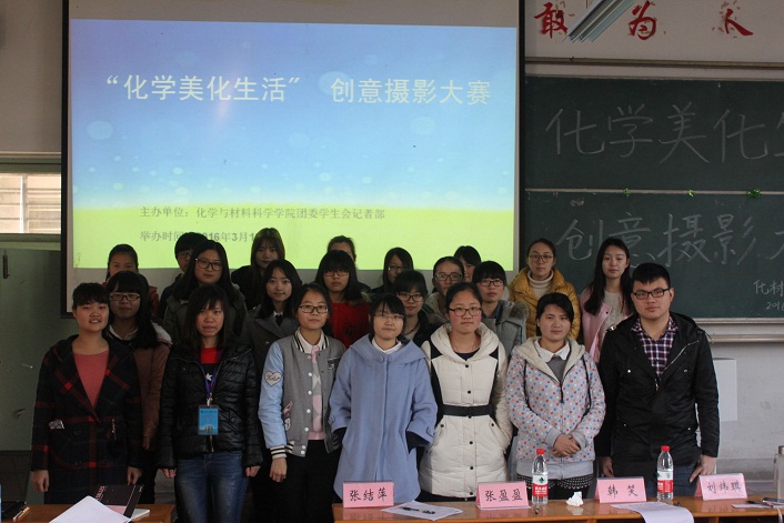 化学与我们的生活息息相关,也让我们的生活多姿多彩。为了提高学生对化学学科的兴趣,包子漫画 学生会记者部于3月12日上午在田楼8102开展以“化学美化生活”主题的创意摄影大赛。本次大赛邀请化材院团委学生会副主席韩笑、宣传部部长张结萍、学习部部长张盈盈、实治部部长汪洋以及心健部部长刘炜琪担任评委,选手包括13级、14级、15级等十组同学参赛汇报。