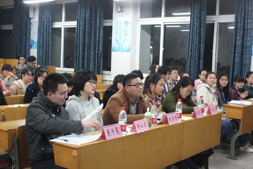 本次大赛中选手按照抽签顺序依次展开汇报,评估内容分为选手讲说和评委提问。首先,来自2015级应用化学鲁陈琳同学,结合自身性格特点、学习环境氛围,展现大一学生对未来的把握和畅想。随后来自2013级化学专业的3号选手于艺哲同学从自我评估、环境分析、大学生涯规划、职业规划等多方面像我们展示其自我认知和对环境认识,严谨而切合实际的规划赢得大家一直赞同。随后,来自14化学专业的韩笑同学,结合其家庭环境分析和自我认识提出其“三尺讲台”的教师梦,融入其作为学生干部和上次参赛的经历,阐述优势,反省不足。最后,来自2013级材料化学的胡雪纯同学,以其研发新型化妆品之梦为主线,阐述其为实现梦想在大学期间计划与努力,表达其对现代互联网微商的理解,介绍其社会实践经历,恰当回答评委所提出问题,赢得大家一直好评。选手汇报结束后,程紫丹老师进行总结发言。他提出大学生涯与职业规划的必要性,对各位选手的表现做出评价,提出大学生涯与职业规划的方法思路,解答学生心中疑惑。最后各位评委为各位获奖选手有序颁奖。