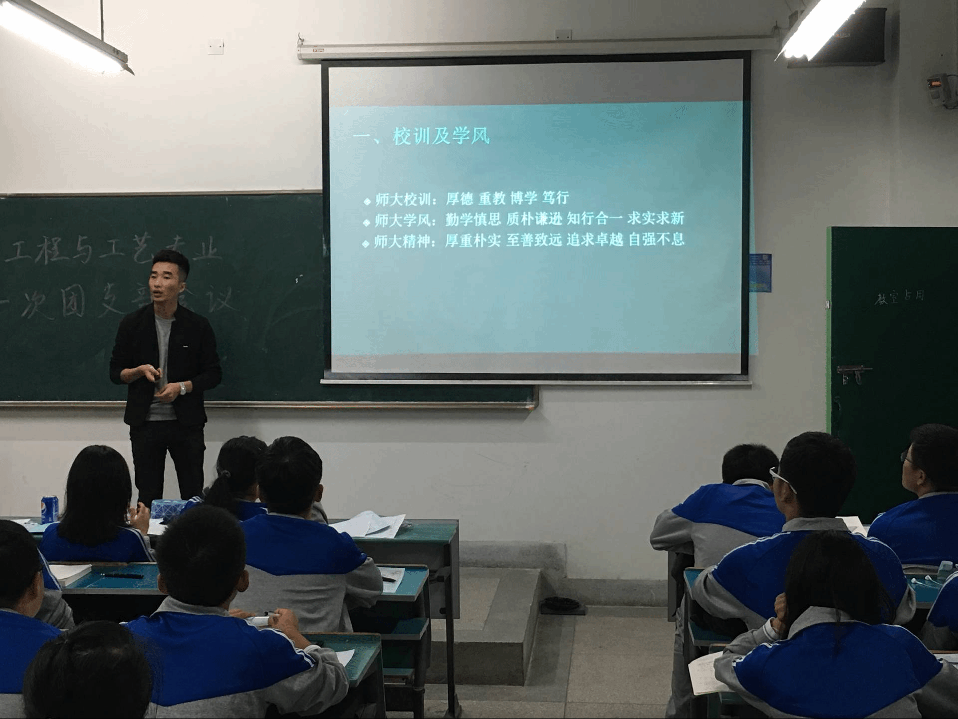 本次解读会共分为两个部分,第一部分,全班同学一起进行了关于审核评估专题的培训,力争在专家进校审核考察中展现师大学子的的优良风采。辅导员主要以教室文明、寝室文明为重点,对同学们提出了一些要求,如:在教室里不允许做“低头族”玩手机、在教室里严禁吃早餐、在寝室不允许留宿外来人员等,为营造一个良好的学习上课氛围和安全、和谐的生活环境提供了有力保障。第二部分,辅导员对同学们进行了校规校纪的详细解读,为大家解决了心中的疑惑。对于学校今年进行改革的学分制度,极大的改变了往年同学们将时间与精力投入大量的活动中而忽视学习,本末倒置的现象,让同学们在学习之余,感受社团活动的乐趣,提高个人能力,有针对性的参与到自己所热爱的活动中,努力做到最好,缓解了学分给同学们带来的压力。