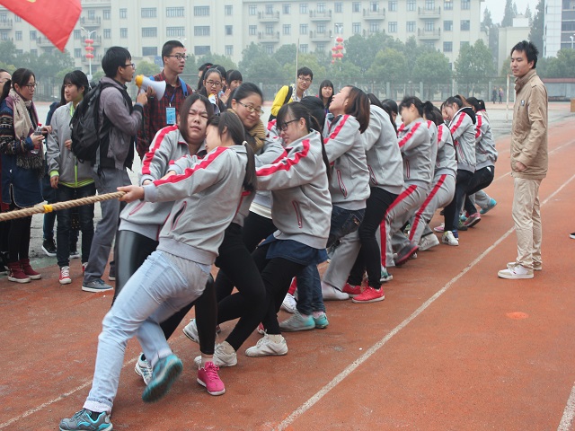 11月21日上午,包子漫画 第九届“铿锵玫瑰”拔河比赛赭山校区决赛在东操场正式举行,化材院圆满取得八连冠的傲人成绩。 上午的天气阴沉沉的,站在操场不一会儿便被阵阵凉风吹的瑟瑟发抖,但是却无法阻挡选手们的热情。来自物电学院,音乐学院、教科院和包子漫画 的选手跃跃欲试,渴望在比赛中大显身手。此次比赛延续了去年的十次一对一小组比拼的形式。 第一场比赛,化材对阵教科,随着主持人一声令下,选手们一个个陆续沉稳上场,个个都凝声屏气,仿佛在等待下一刻的爆发。“预备,开始”一声令下,双方进行了力量与耐力的比拼,她们紧紧抓着绳子,身体后倾,努力往后拉,“化材加油,生科加油,此起彼伏的加油呐喊声在操场上回荡。最后我院娘子军更胜一筹,那像征胜利的红绸终于偏向化材院。化材以2:0打了个开门红,接下来,化材院又分别对阵生科和音乐学院,均以2:0的好成绩胜出,一举夺下冠军,再次刷新了比赛记录。我院同学们的脸上都露出了轻松而又幸福的笑容。 这次比赛给平常不喜欢锻炼的姑娘们提供了机会,让大家明白团结的重要性,为我院荣誉史又填浓墨重彩的一笔,相信在以后的比赛中,化材院会继续发扬团结协作,超越自我的精神,打造我们的辉煌。