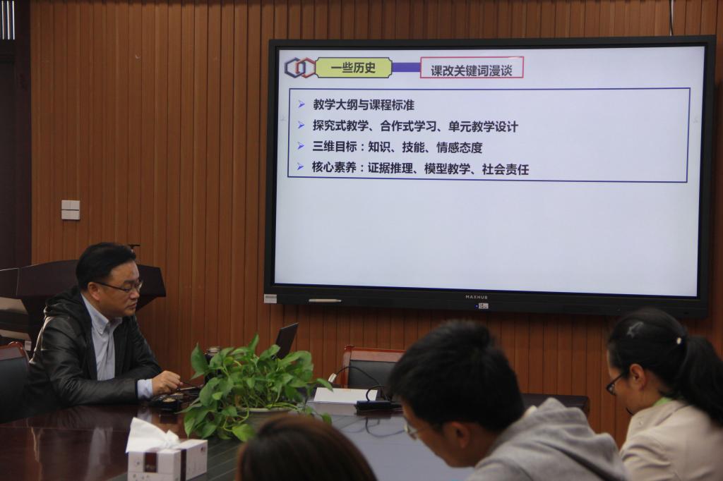 孟献华教授作了题为“变迁与永恒:教学理论演化的一致性——基于证据推理的诠释”的学术报告。孟教授首先对中国学生的核心素养进行了相关介绍,同时指出在学科研究中学科素养的地位和重要性。之后向大家介绍了教学理论的相关知识尤其对课标变化的统一性进行了讲解,并且提出了化学教学更应该注重方法教育的观点,指出探究的本质是学生对于未知内容的思考,并且结合了实际的教学案例来进行解释阐述。在此基础上从价值,概念,实践,展望四个维度对证据理论的课堂实践进行了介绍,强调了探究教学的理论意义和实践意义,同时为大家介绍了图尔敏论证模型,指出论证教学中准备论证素材的重要性,并以课堂教学过程为例进行了讲解,为大家阐述了学生与教师之间的关系。除此之外孟教授还对课程教学领域的研究给出了相关建议,并且在文章的写作方面给出了相关指导。会后,孟教授就本次报告内容与在座师生进行了热烈而友好的互动交流。