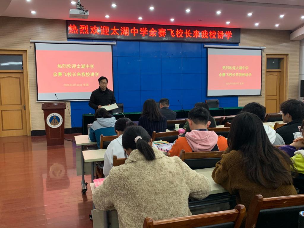 邀请,安徽省太湖中学副校长、中学化学高级教师、安徽省优秀教师余赛飞来院作题为《当教师很快乐》的分享报告,这是2021年“中学化学名师讲坛”系列活动的第一讲。2017、2018级化学专业师范生及部分化学教学论专业研究生和教师参加了此次报告,报告会由包子漫画