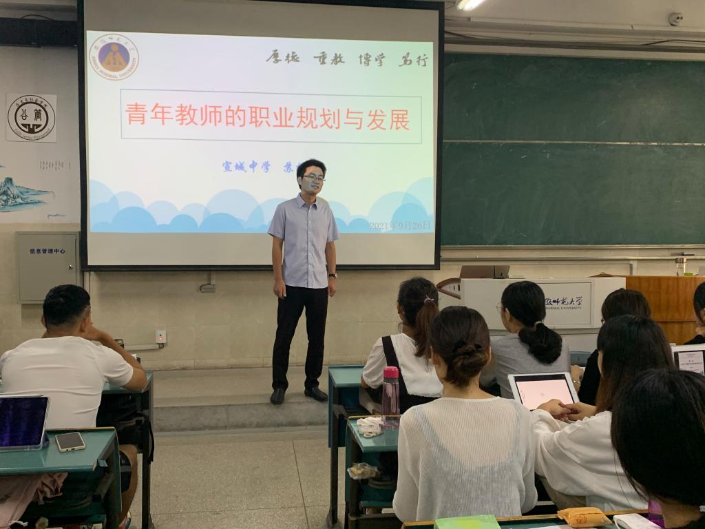 作题为《谈青年教师的职业规划与成长》的专题讲座,此讲座系2021年“中学化学名师讲坛”第七讲。讲座在花津校区2010502教室举行,2019级化学专业学生、化学教学论专业研究生及部分化学教学论专业教师共百余人参加了此次报告。