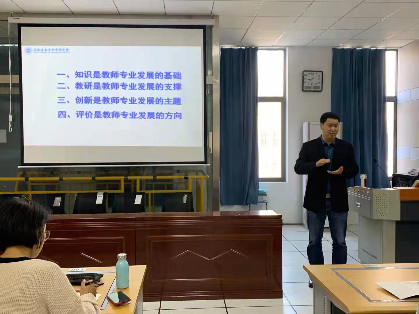 朱成东作题为《新课程背景下化学教师的专业发展》的专题讲座,一名合格的中学化学老师要引领学生发展。朱老师提出,作为一名准教师,自身丰富的化学学科知识是必备的,学生们应在学校期间夯实专业基础。教学研究应当始终伴随着教师的专业化发展,并时刻提醒自己创新教学内容,创新是教师专业发展的主题。评价即学习,教学评价时要更关注学生的批判性思维,自我管理等高层次能力。