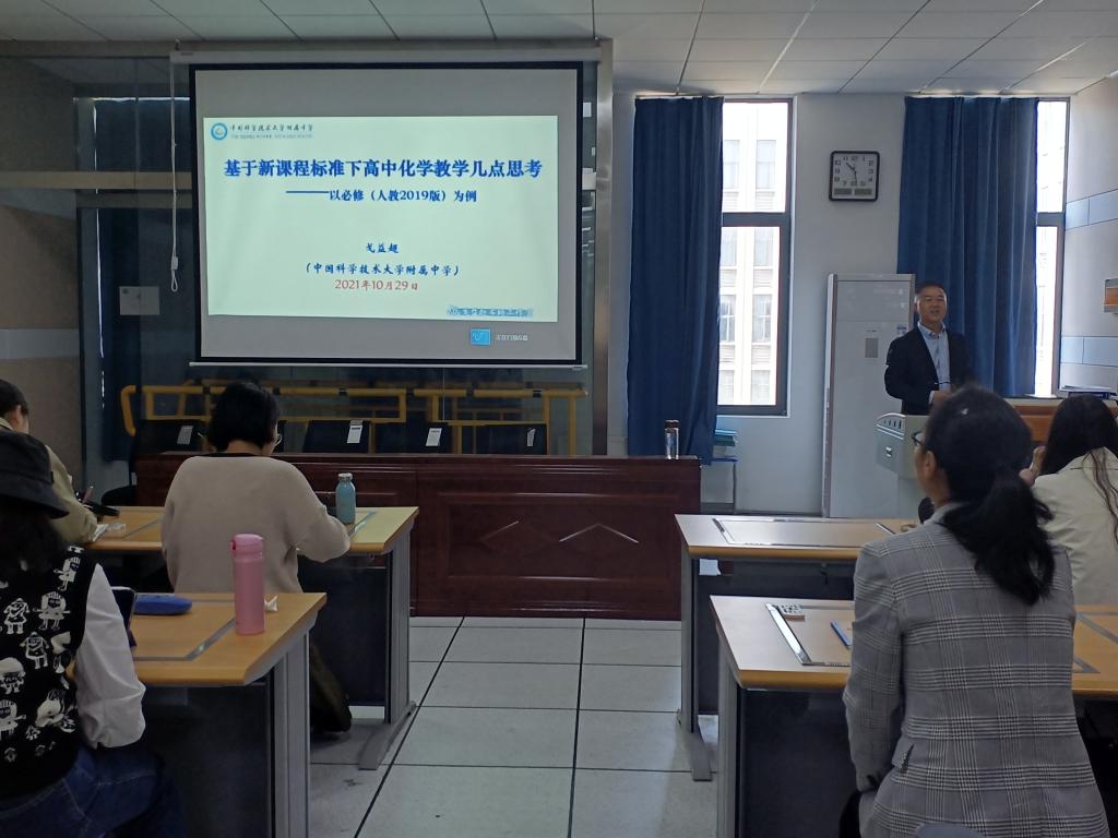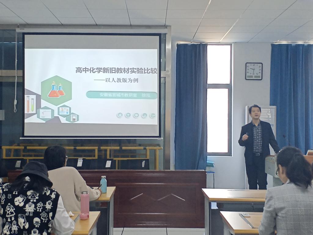 戈益超作题为《基于新课程标准下高中化学教学几点思考——以人教版为例》的专题讲座,戈老师就《物质的量》单元教学展开细节讲解,与同学们交流了备课心得。上好一节课需要团队合作,且多次打磨,最终才能成为一节供大家学习的优质课。