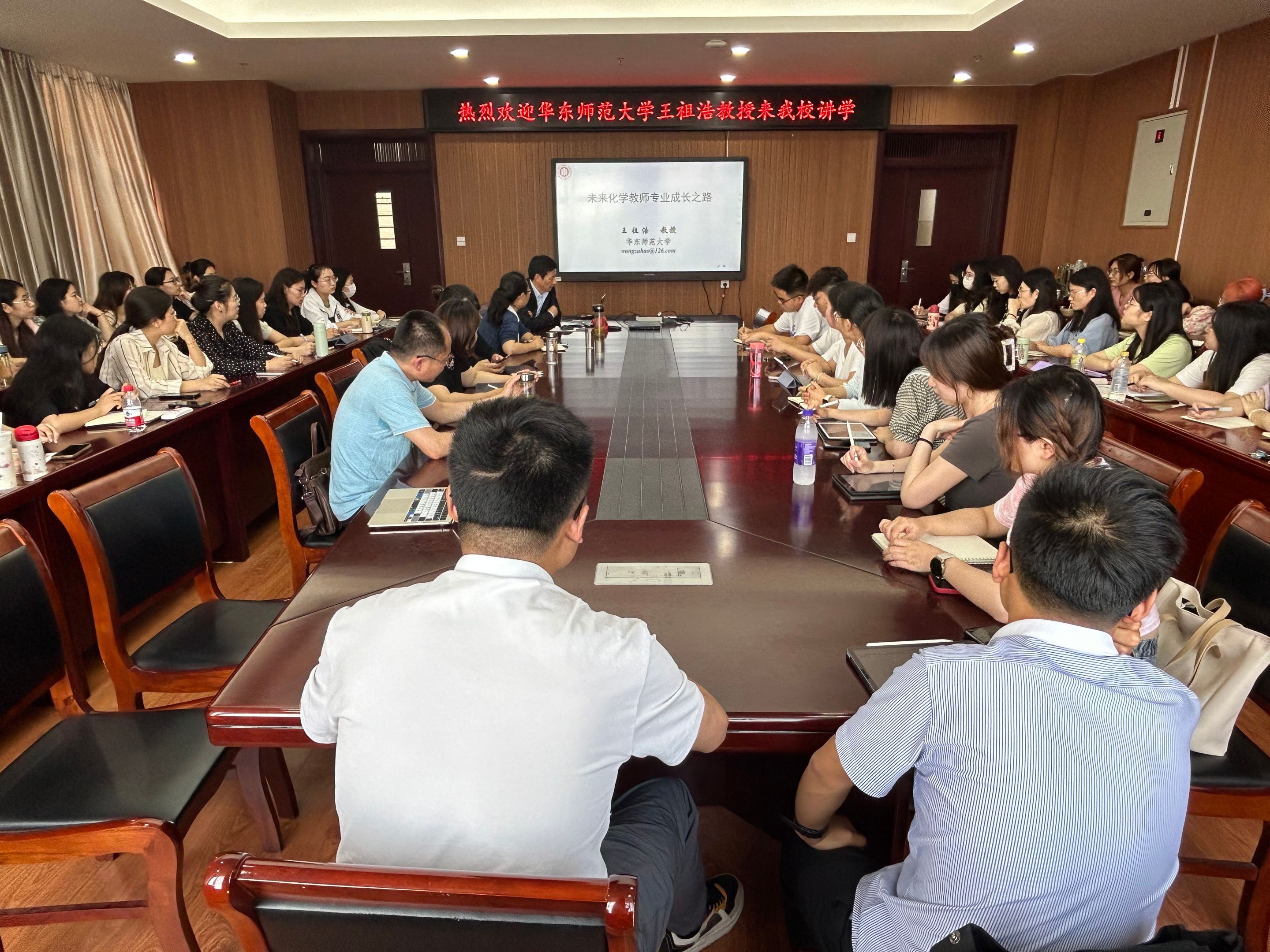 科研副院长周双六主持,化学教学论专业教师、全体化学教学论专业研究生参加了此次报告。