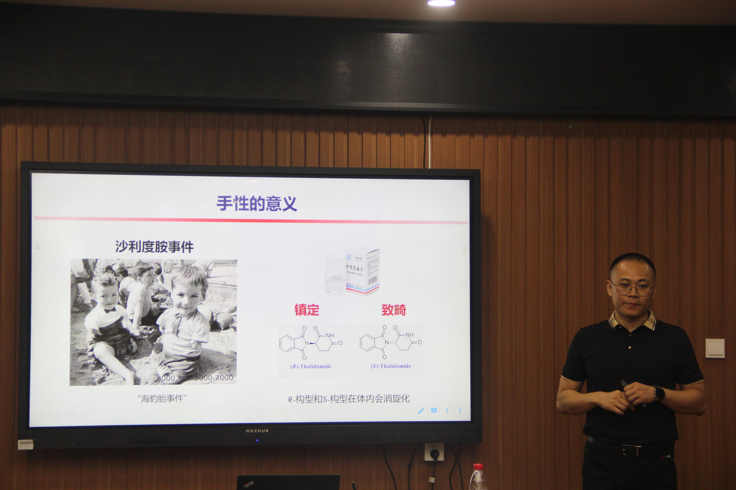 庄涛涛研究员作了题为“手性无机功能纳米材料”的学术报告。庄研究员首先介绍了手性无机功能纳米材料的研究背景。然后阐述了手性磁光半导体纳米结构相关内容:1、特定区域磁化纳米棒;2、双缓冲介质合成策略;3、实现磁性单元在纳米棒上的定向生长。最后介绍了纳米线有序化-实现手性光学活性、无机-有机复合实现手性发光、高质量量子点-发光基元。会后,庄研究员就报告内容与与会师生展开了一系列的学术讨论与交流。